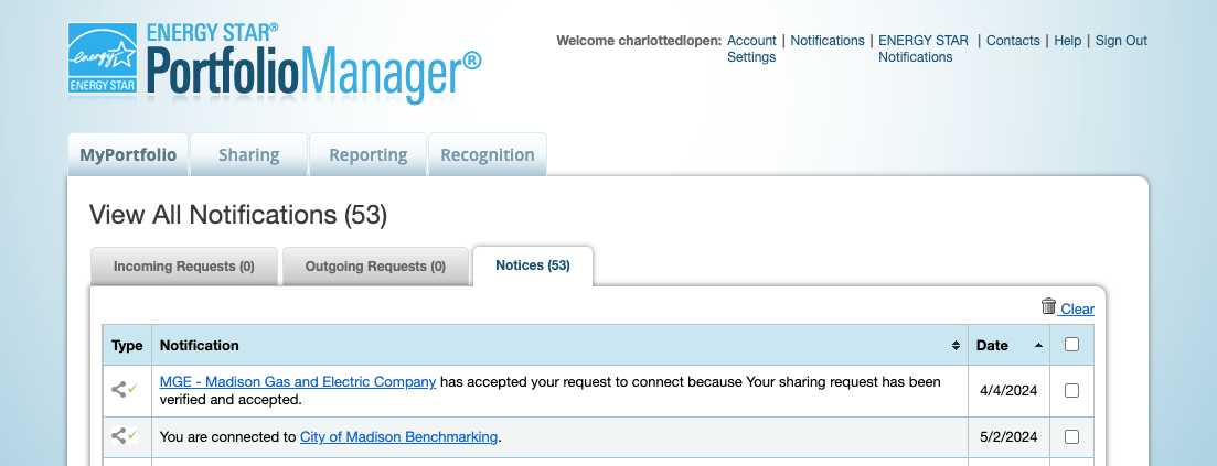 Before being able to share your properties with the City of Madison Benchmarking ESPM account, you must first connect with them on ESPM.