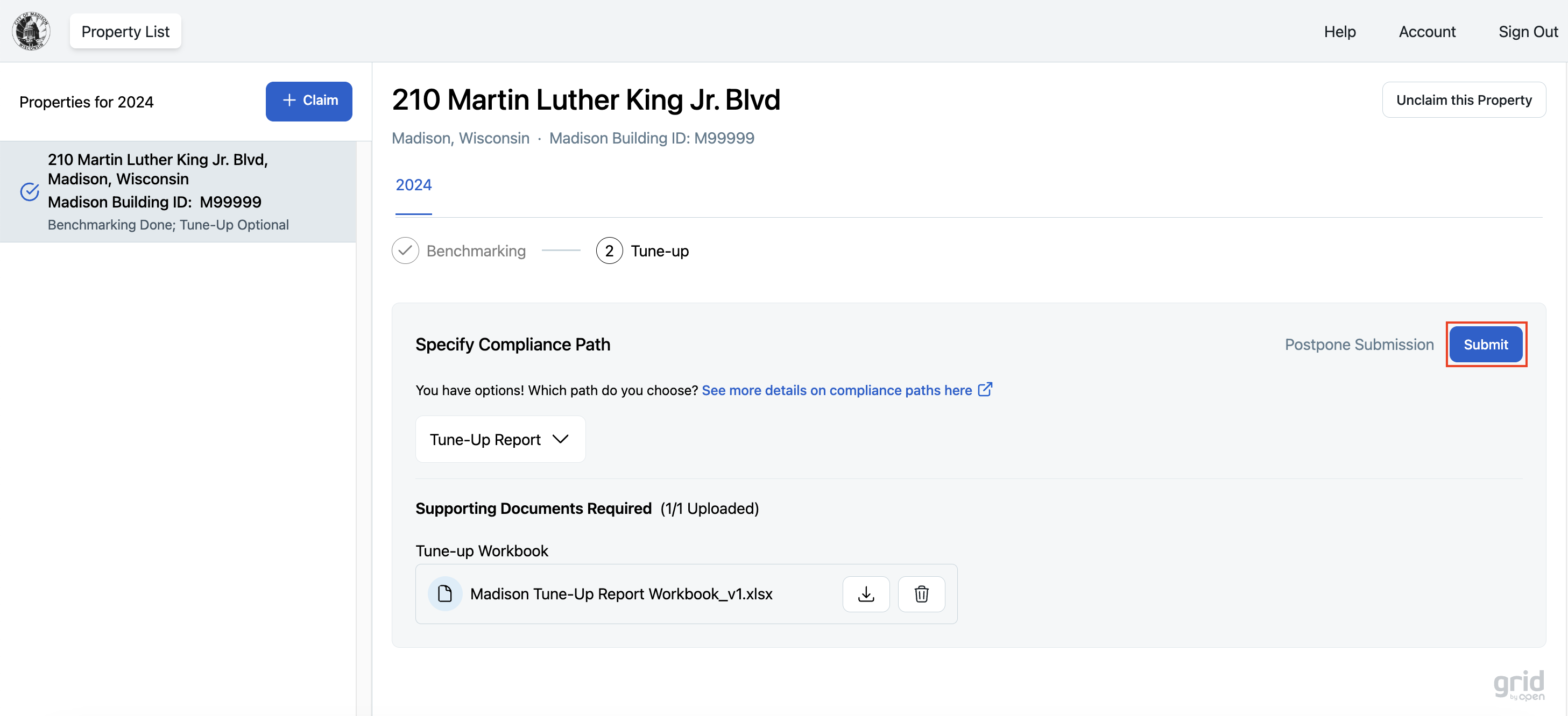 STEP 4 - Once your Tune-up Workbook has been uploaded to the platform, click "Submit"
